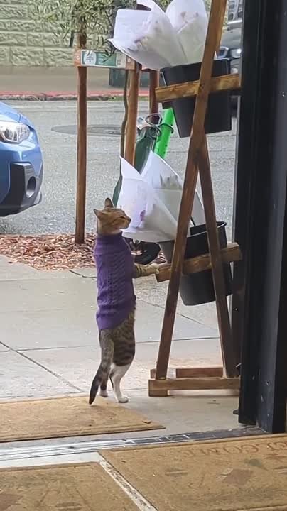 Посмотрите, какой чудесный кадр. Он сразу напомнил нам атмосферу мультфильма «Возвращение кота». Кажется, этот пушистый эстет очень ответственно выбирает самый милый букет. Возможно, для кого-то особенного?