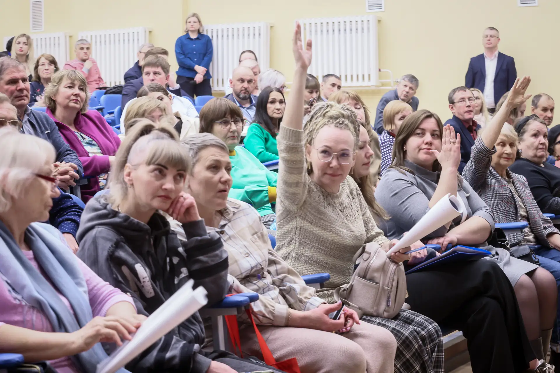 Седьмая и последняя в этом сезоне открытая встреча Сергея Верещагина с людьми прошла в школе № 155. В огромном (500 кресел) зале смогли поместиться все желающие и задать свой вопрос главе города.