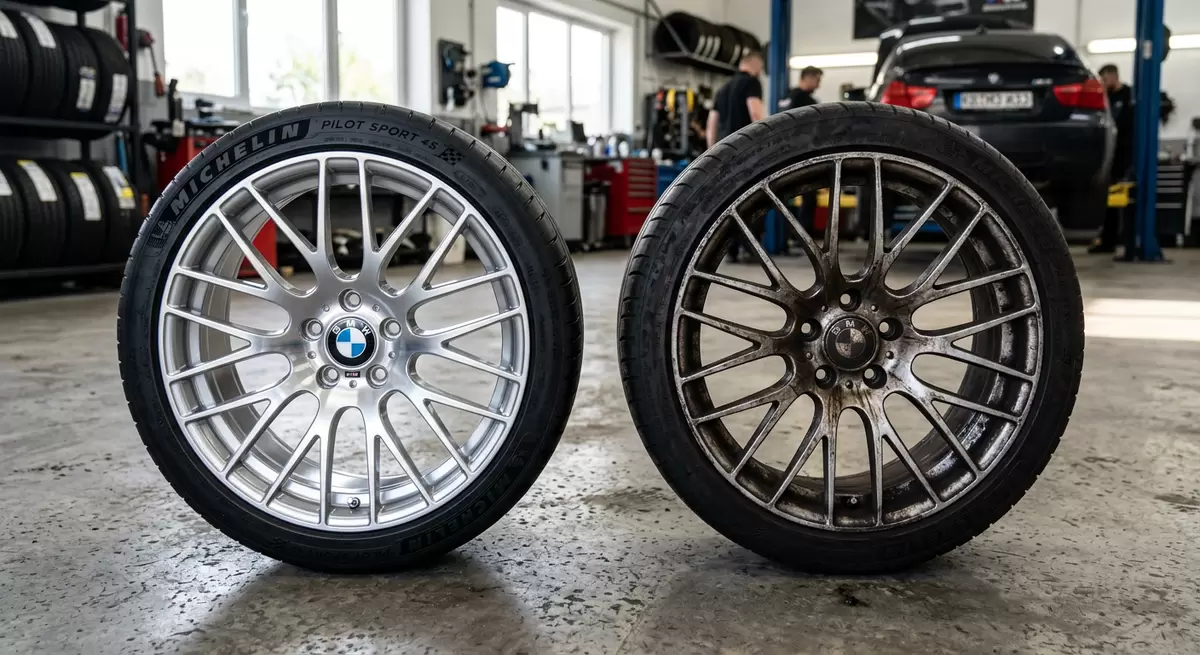 Если вы заметили микроцарапины или потускнение лака, пора заняться полировкой. После завершения мойки и полировки стоит защитить диск, создав барьер между лаком и тормозной пылью. Для этого подходит керамическое покрытие или воск, в зависимости от сезона.