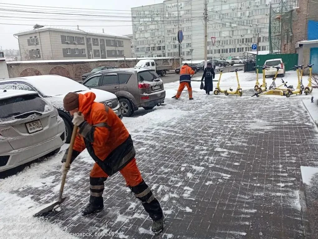 В Красноярске из-за весеннего снегопада дорожные службы перешли на усиленный режим