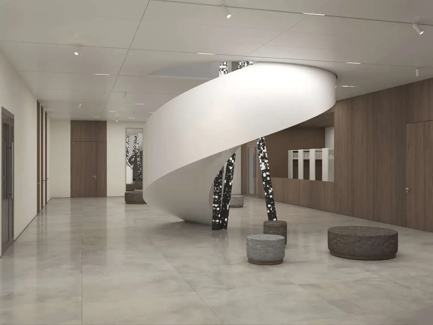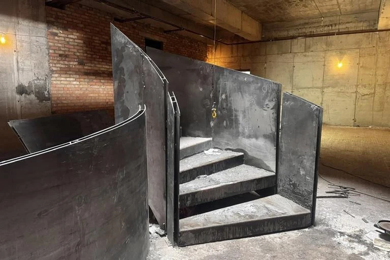 В здании уже монтируют винтовую лестницу, которая соединит цоколь и первый этаж. Также по проекту там появятся «световой фонарь» из стекла и световая инсталляцию в виде берез — отсылка к деревьям, которые посадил сам художник.