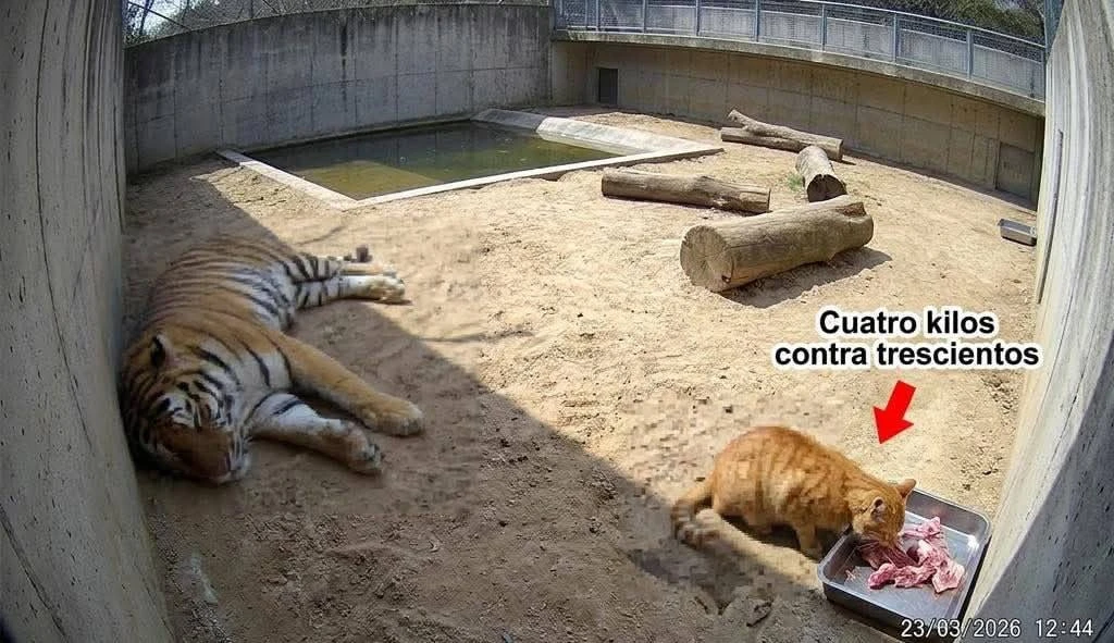 Семейная драма в мире животных развернулась в мексиканском зоопарке Чапультепек. По данным местных СМИ, кот уже четыре месяца проникает в вольер тигра, ест его еду и уходит невредимым.