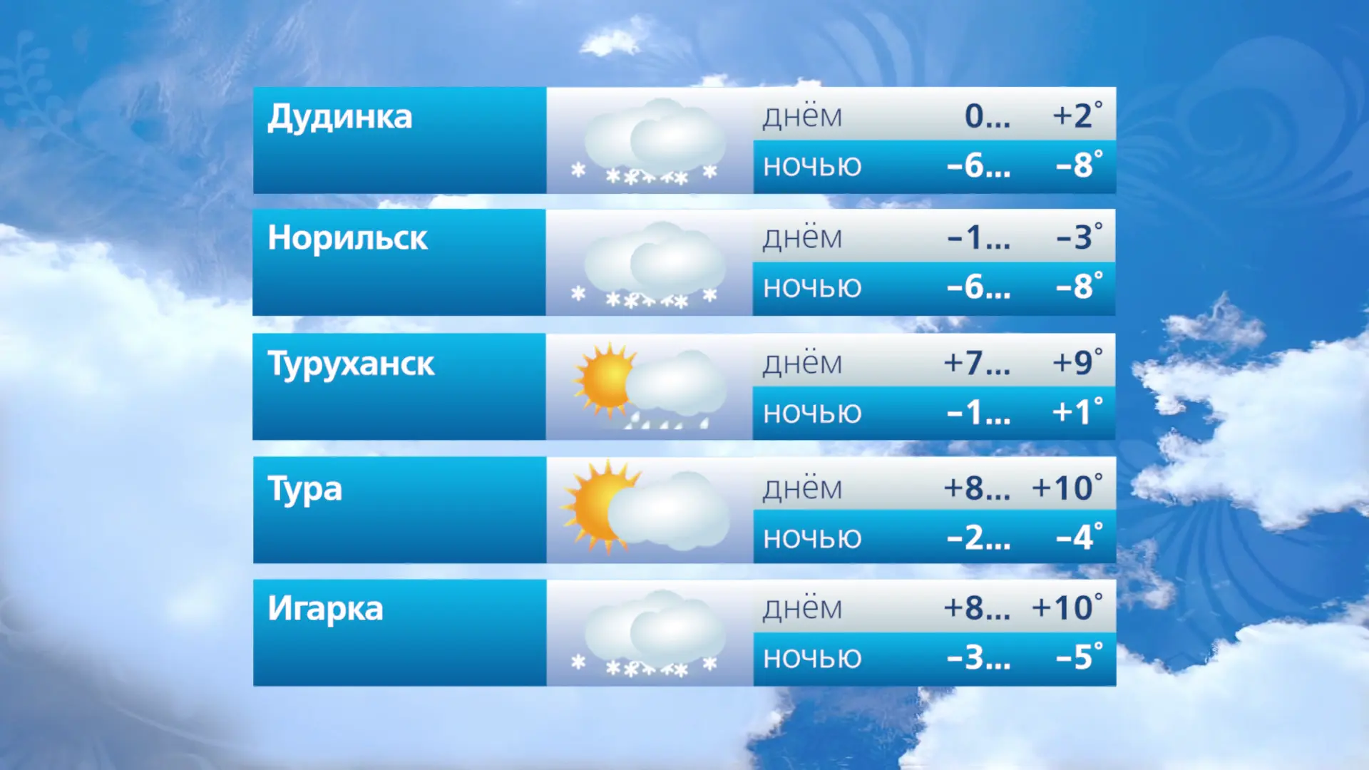 Синоптики Среднесибирского УГМС предупреждают — 26 апреля ночью и утром местами ожидается туман и гололедица, а на юге Таймыра возможен ветер с порывами до 18 м/с.В целом, по прогнозу, предстоящий воскресный день будет...