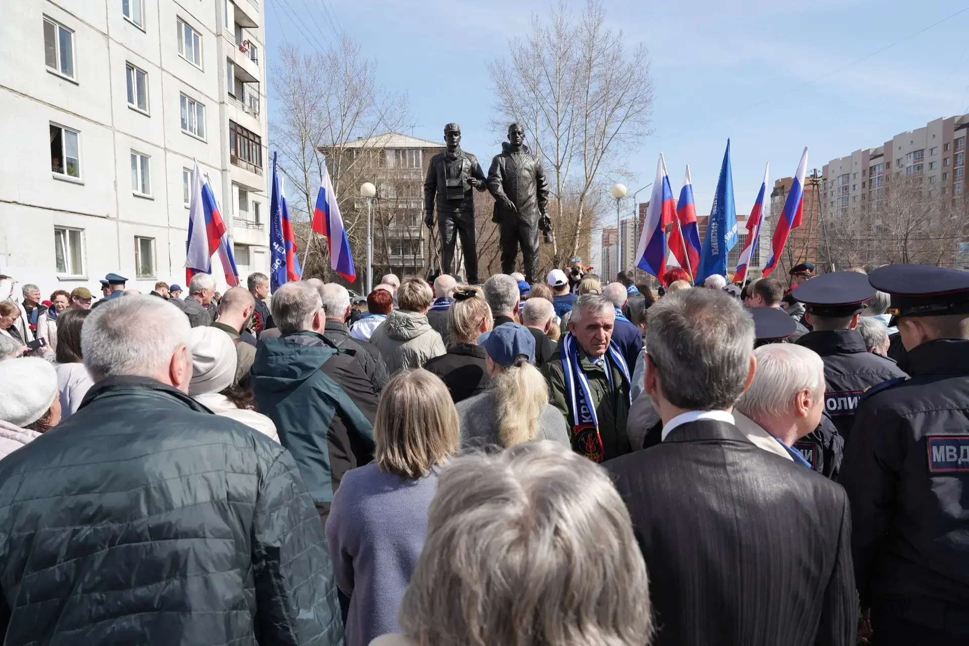 Благодарен общественной организации инвалидов Союза «Чернобыль» за инициативу установки скульптурной композиции. Символично, что в ней две фигуры – только вместе люди могли справиться с бедствием такого масштаба.
