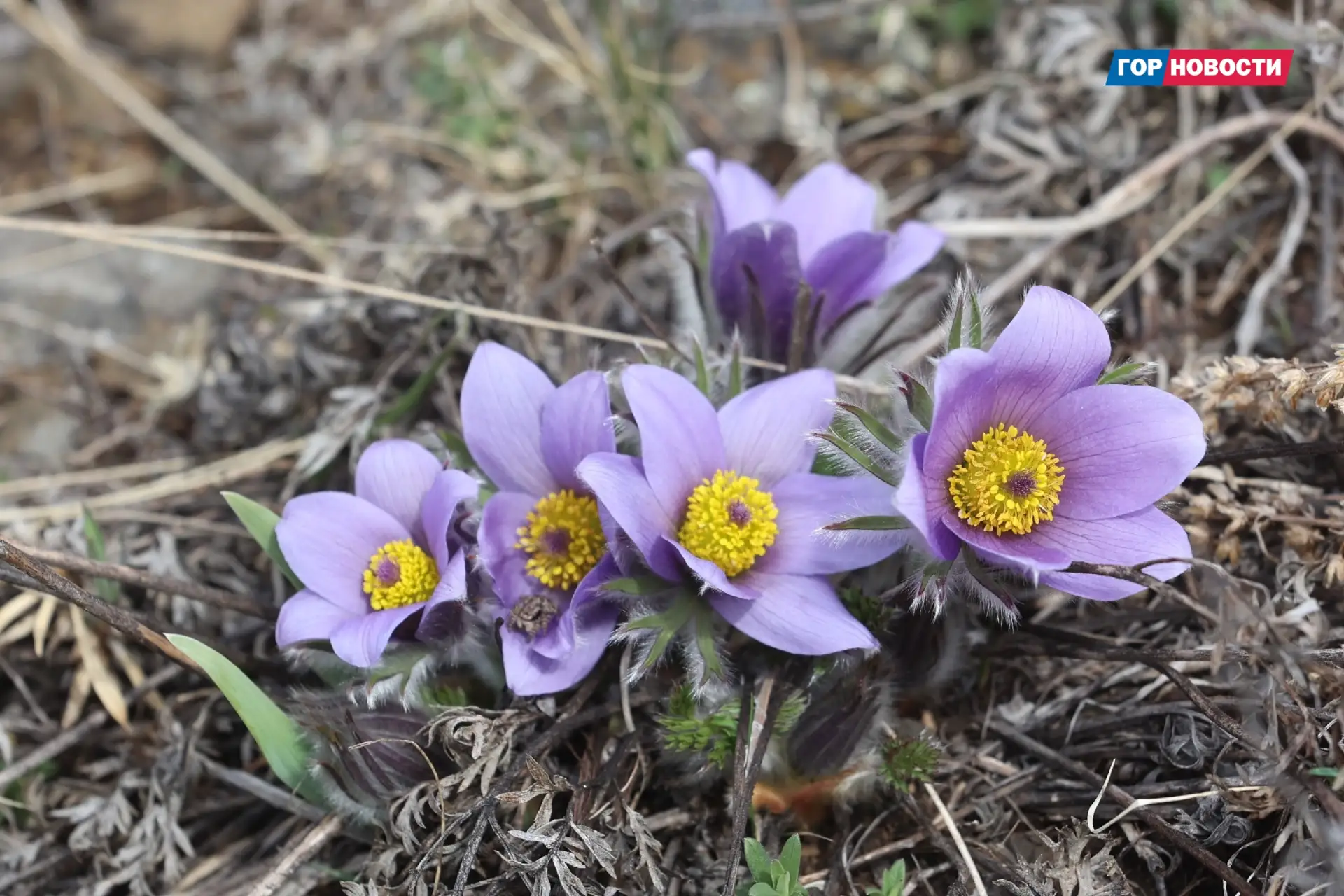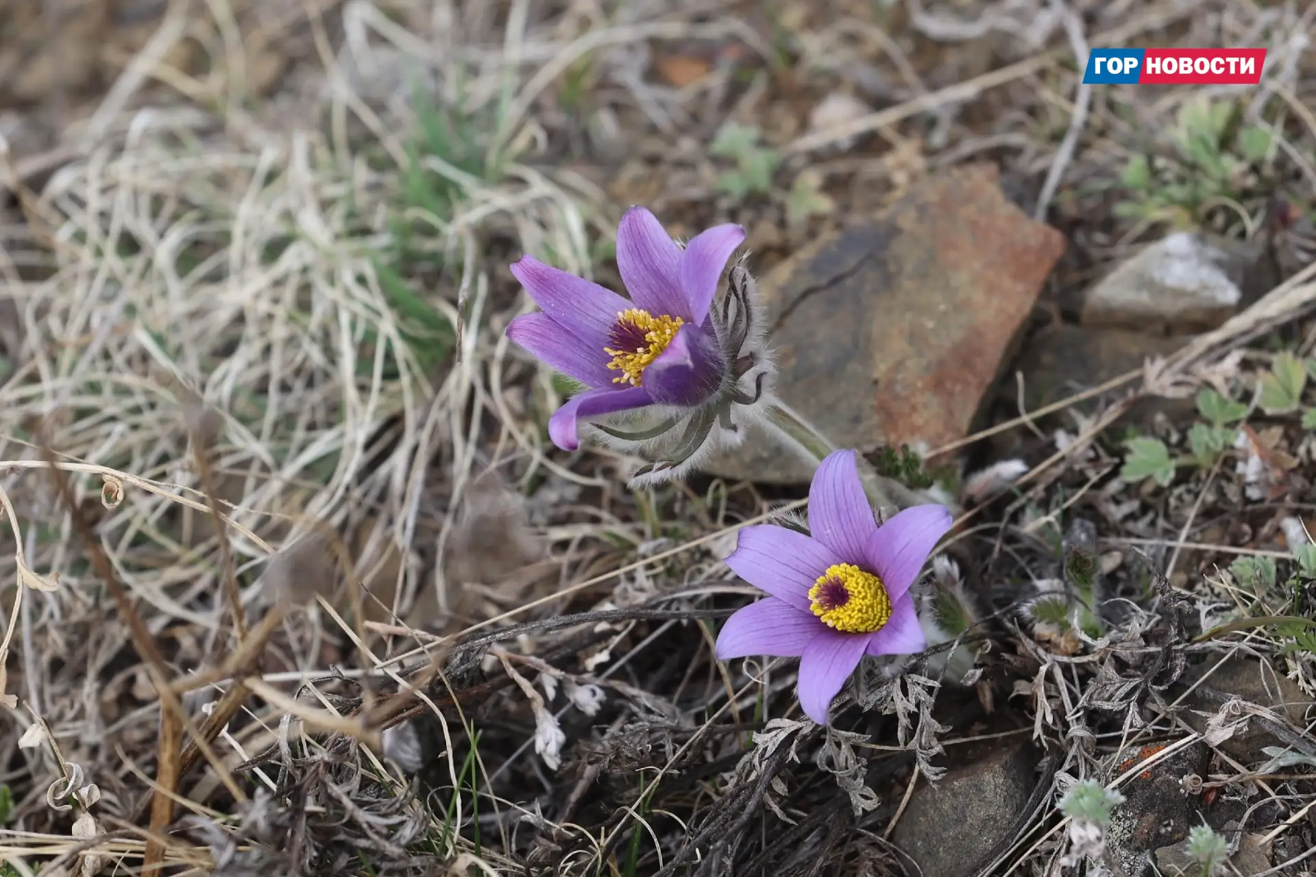 На склонах краевой столицы зацвели краснокнижные первоцветы — фиолетовые и жёлтые прострелы, также известные как сон-трава. Они относятся к семейству лютиковые и напоминают по форме мохнатые колокольчики с жёлтыми многочисленными тычинками.