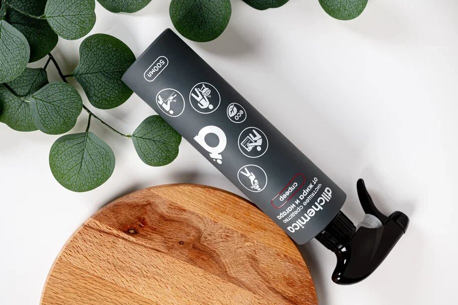Хороший пример — очиститель от бренда Аллхимика™, который можно использовать как спрей. Его следует наносить на внутренние поверхности духовки, при этом уделяя особое внимание наиболее загрязнённым участкам.