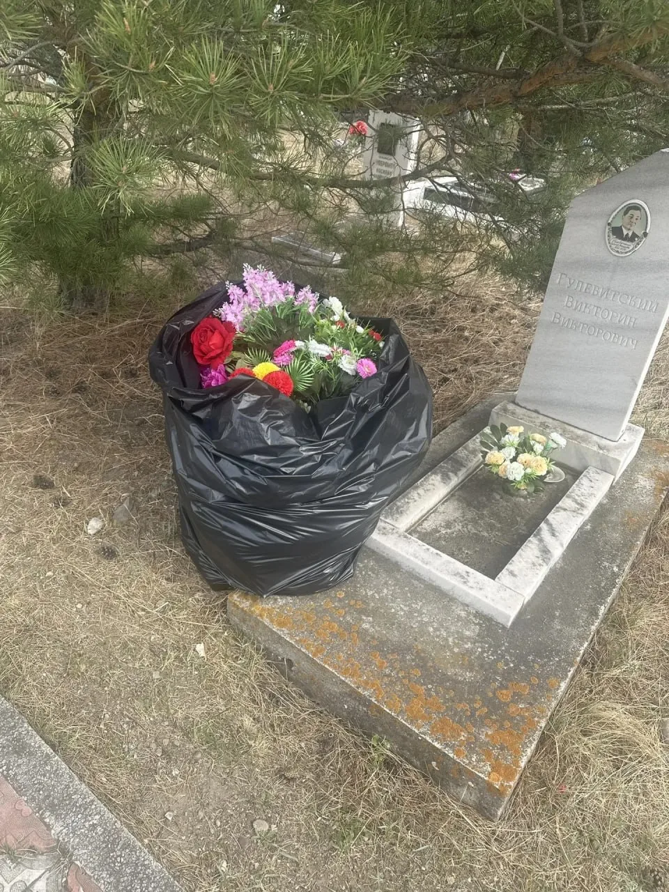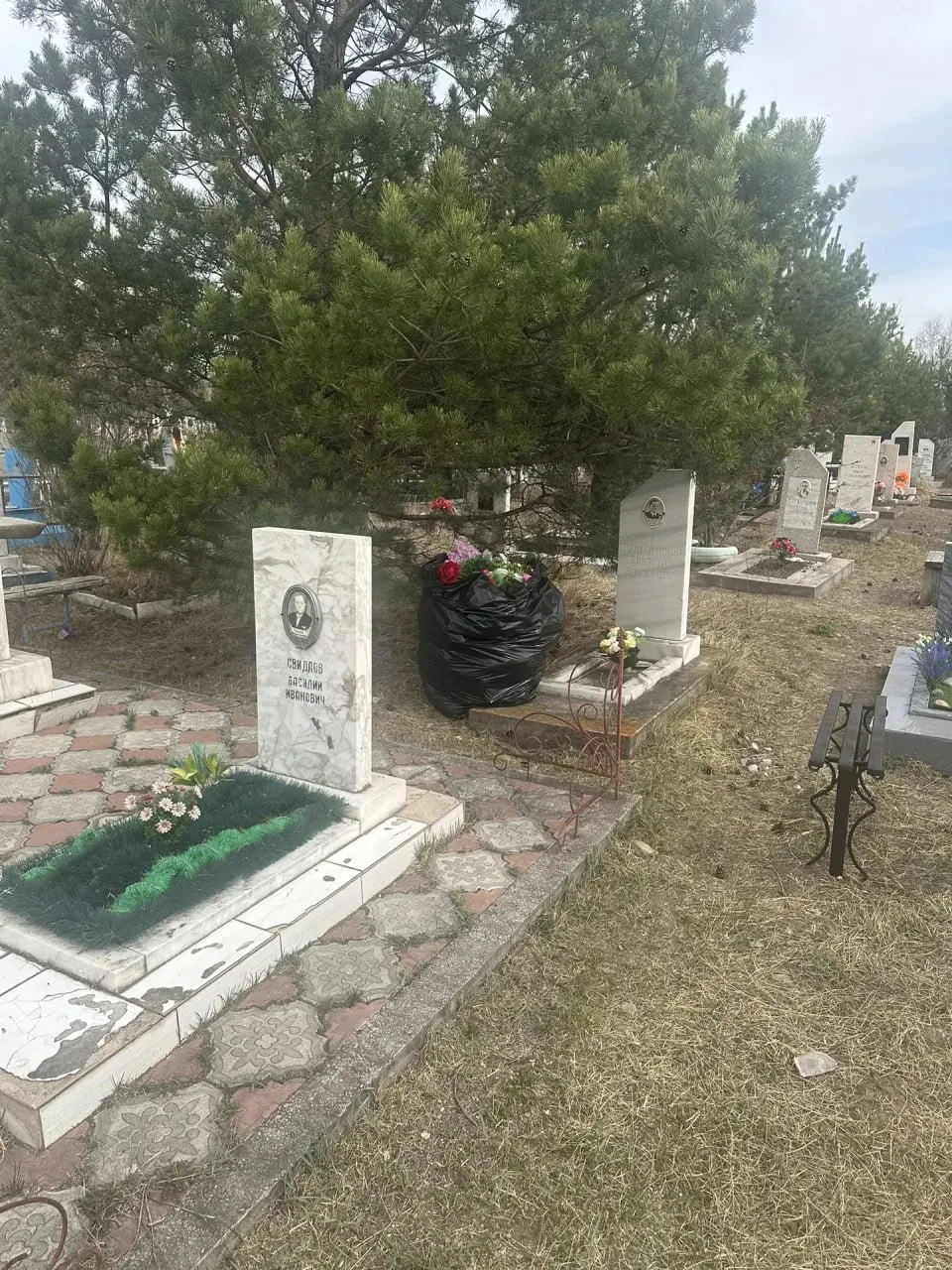 - Мы обследовали кладбища и нашли большие мешки с чистыми, новыми искусственными цветами, причём эти мешки были спрятаны вблизи дорог в кустах. Найденные мешки мы собрали, занесли в здания администрации кладбищ и обратились с заявлением в полицию, — рассказал Николай Гузев.