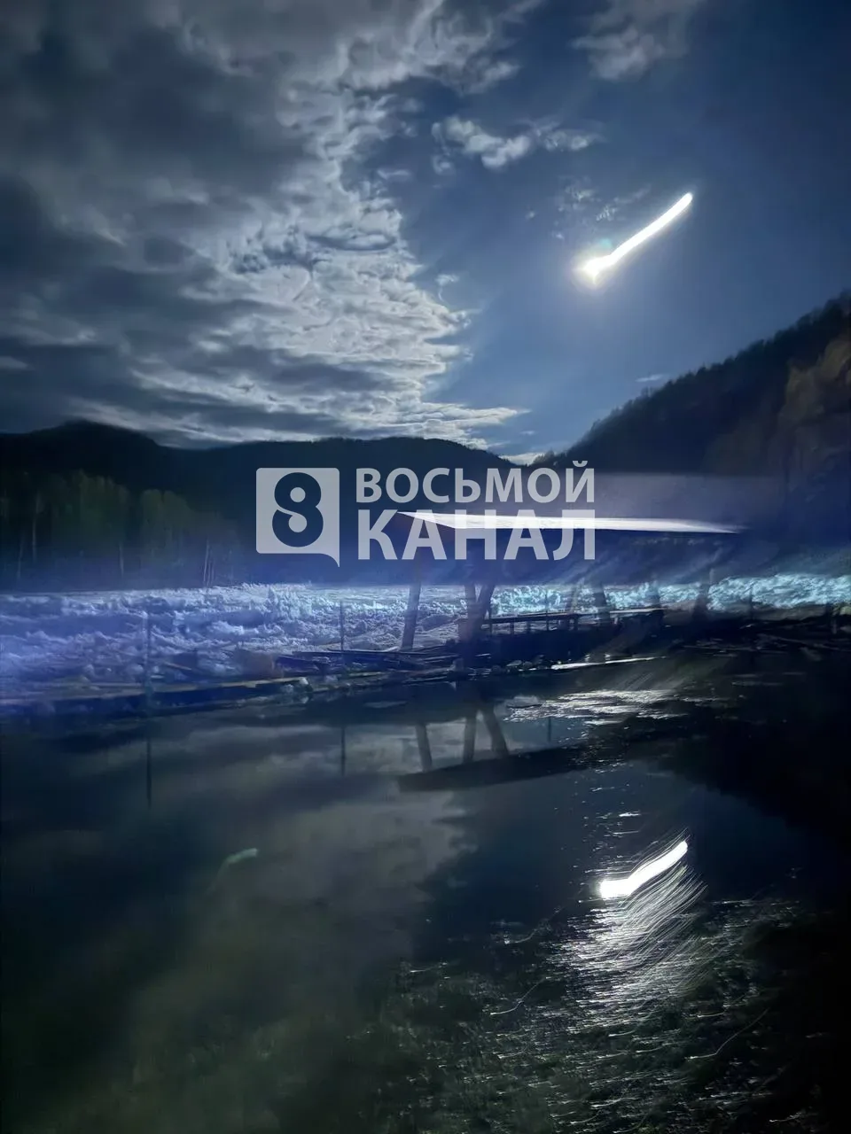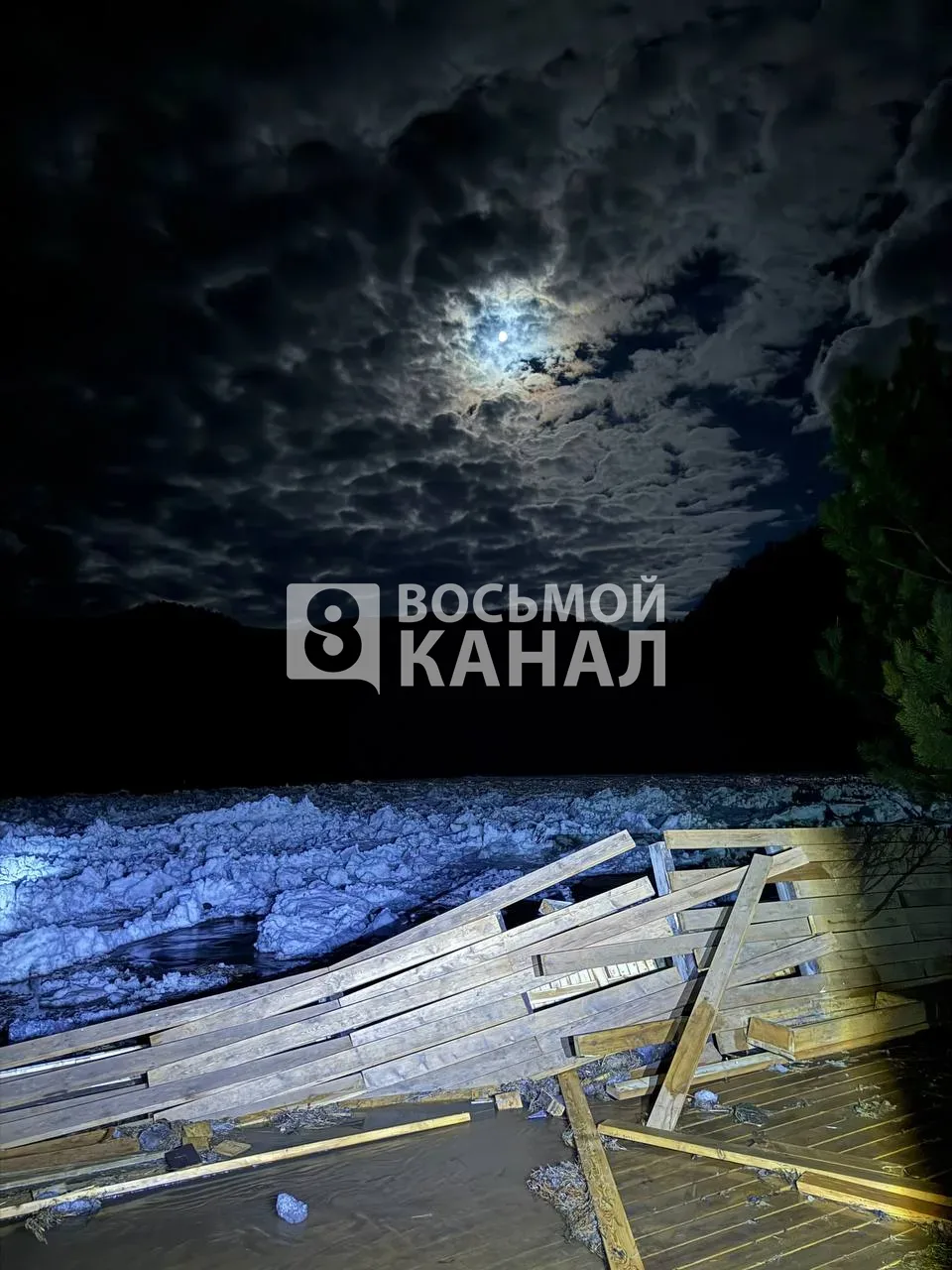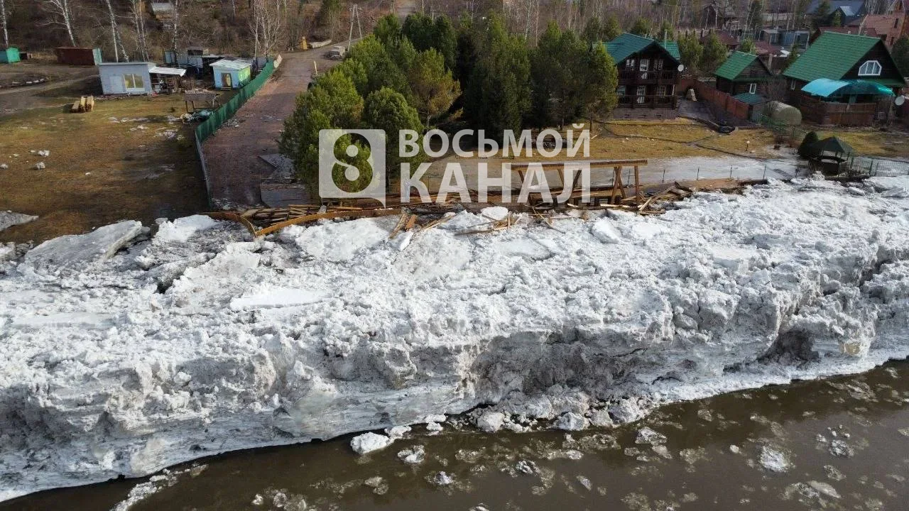 Фото с места событий в нашу редакцию прислали местные жители. Лёд поднял и сломал деревянный причал для плотов и лодок, а также повалил столбы уличного освещения.