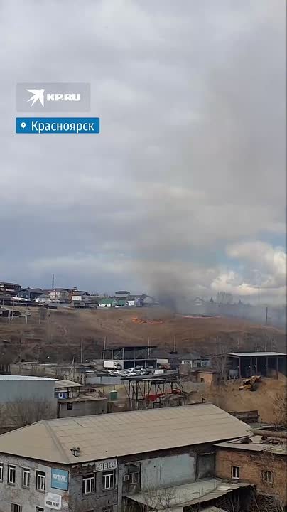 В Красноярске на горе около улицы Калинина горожане заметили пал травы — столб дыма закрыл частные дома на вершине