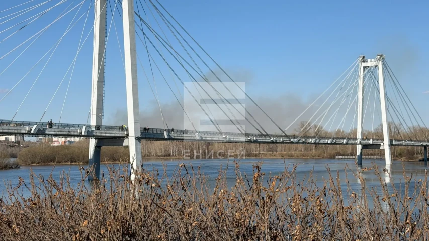 Крупный пал травы тушат на острове Татышев в Красноярске