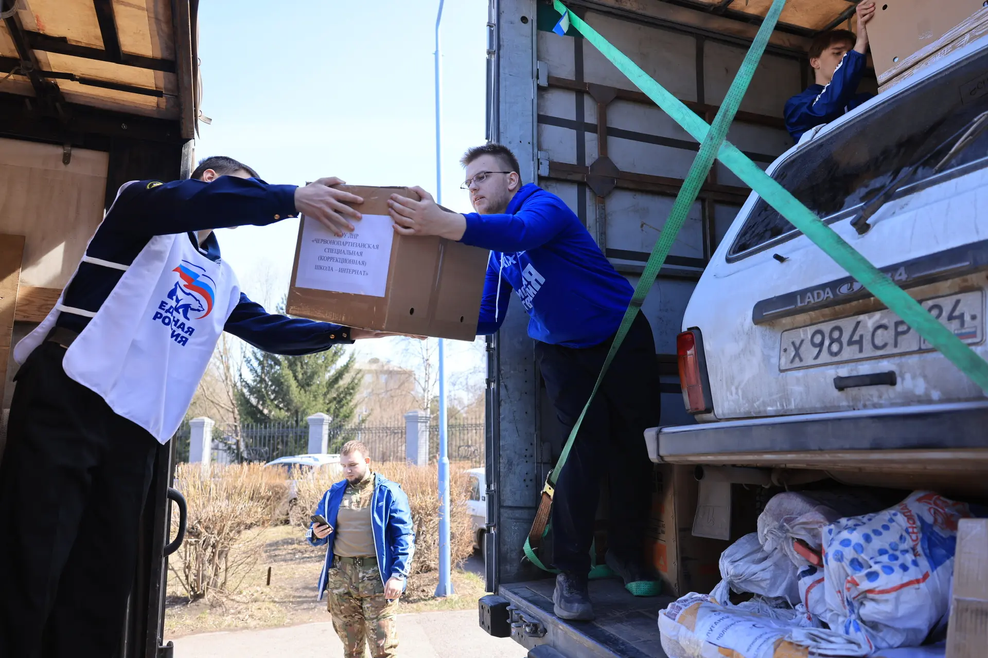 Сегодня из Красноярска ушла уже 139-я по счёту фура с гуманитарным грузом, собранным по инициативе партии «Единая Россия». Ко Дню Победы наши бойцы получат весточки из дома — личные посылки, технику, медикаменты. А для детей из подшефного Свердловского округа ЛНР отправили спортинвентарь, наборы для творчества и настольные игры к летним каникулам.