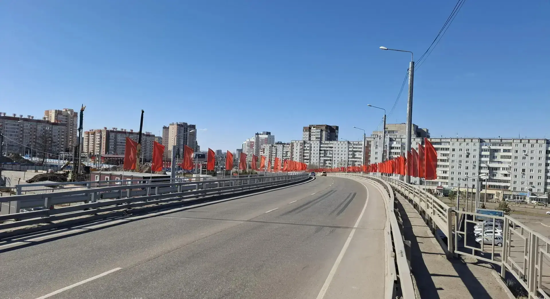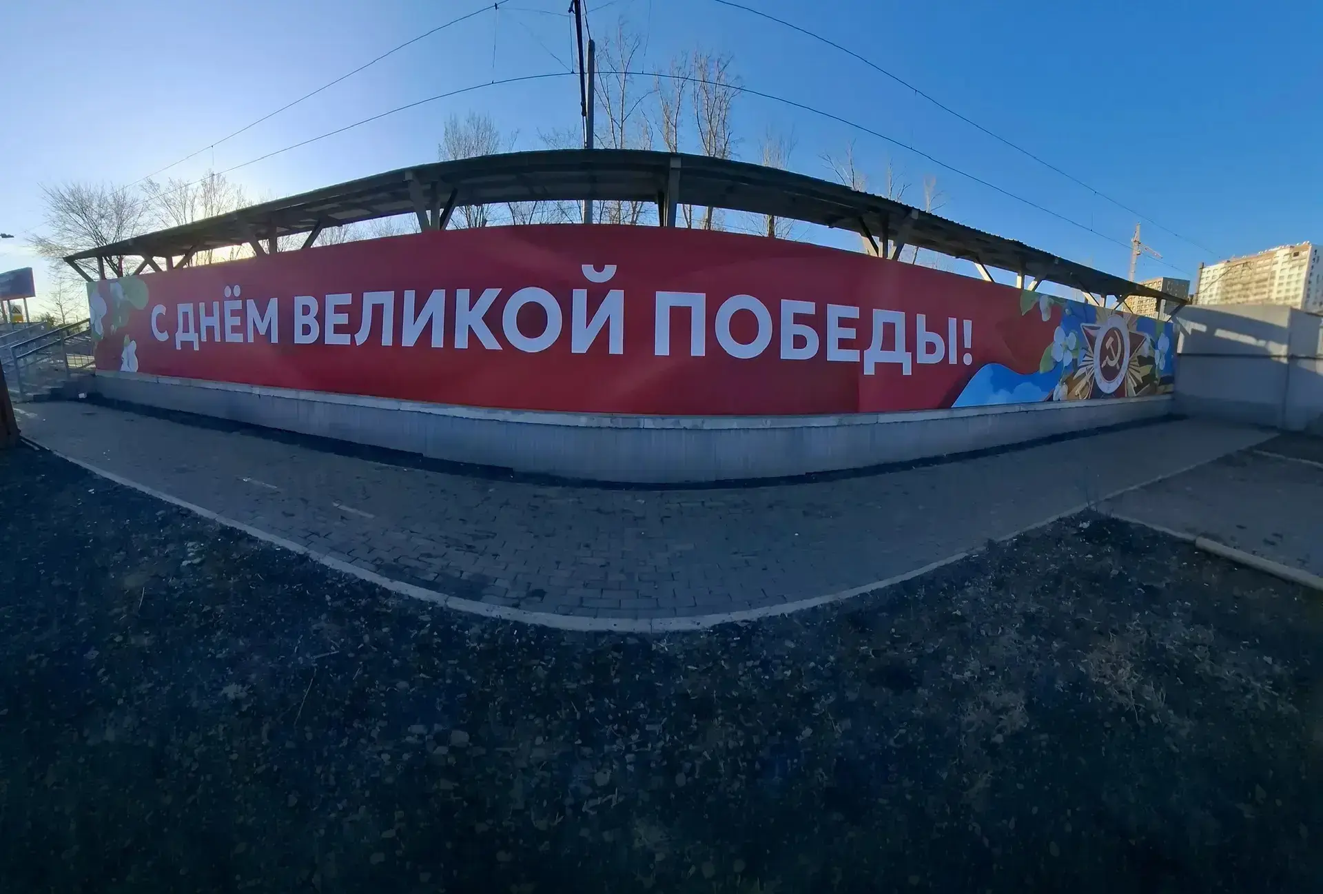 Здесь возле стелы «Слава народу победителю» появился праздничный транспарант.Вдоль Николаевского проспекта и на развязке 2-ая Брянская – Калинина установили трёхметровые флаги.
