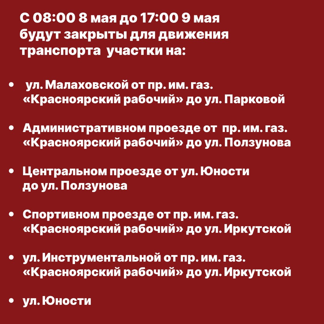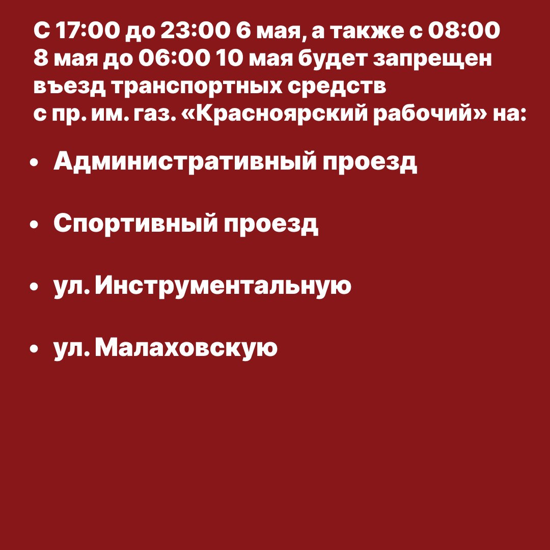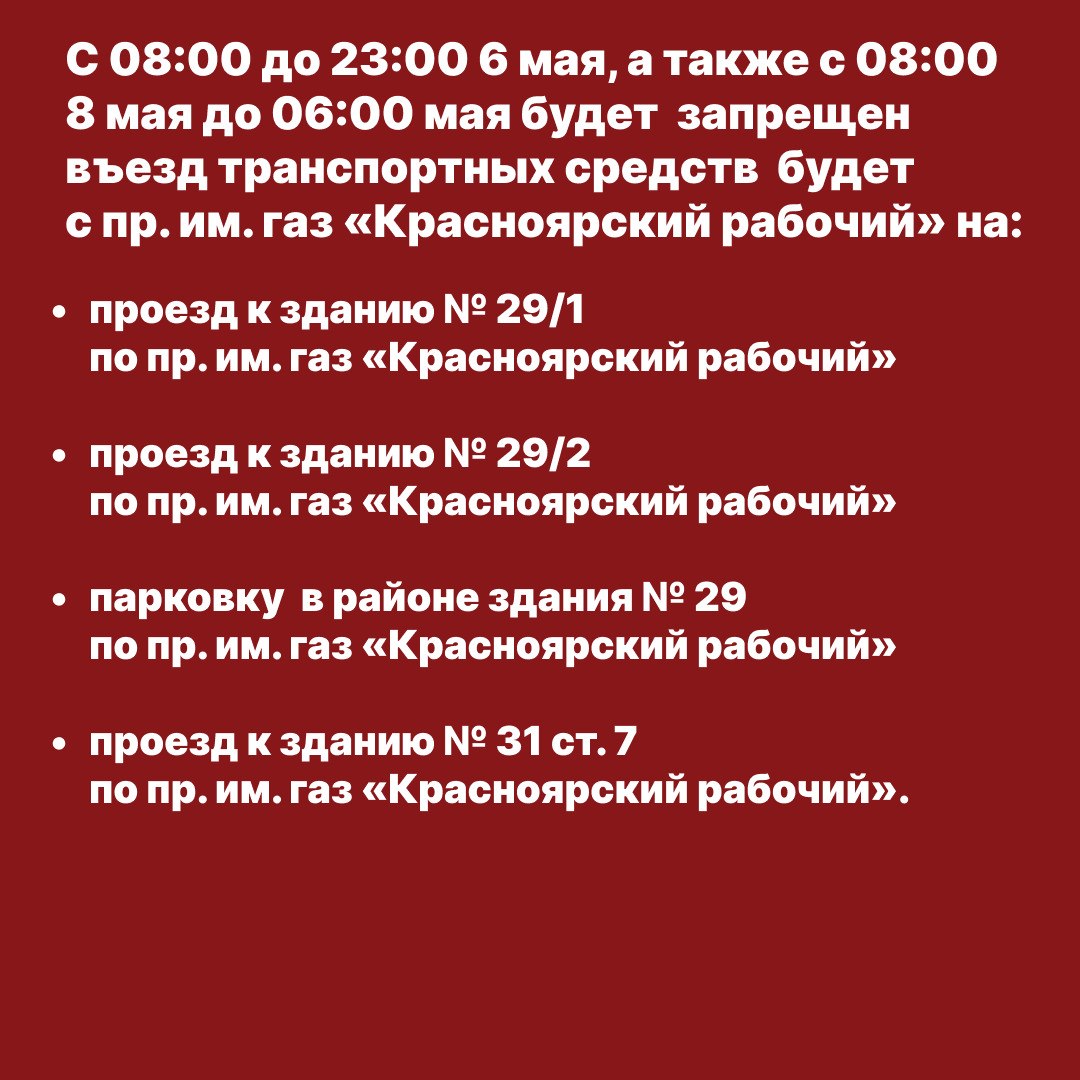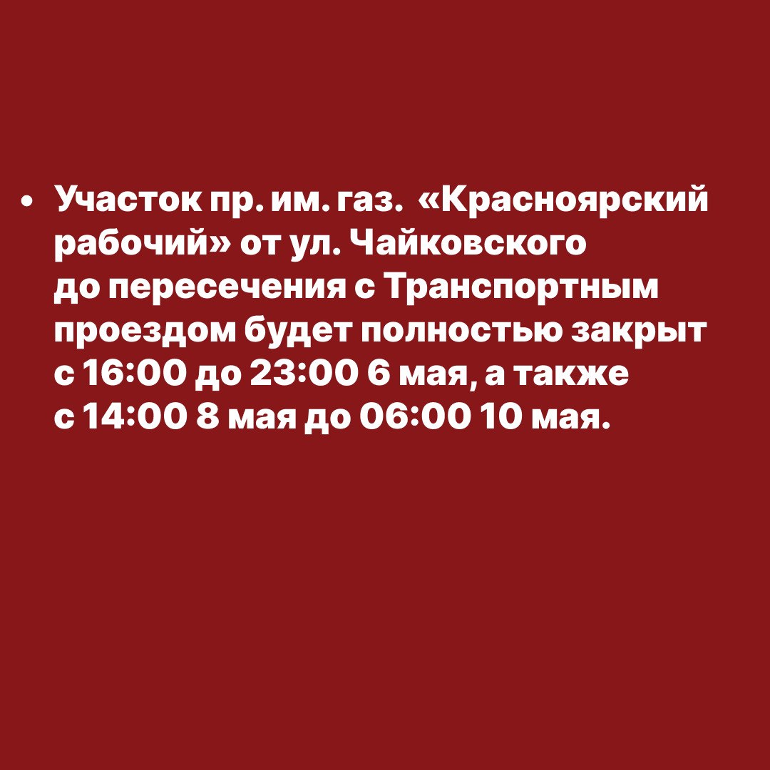 С 6 мая будет перекрыта часть проспекта имени газеты «Красноярский рабочий»