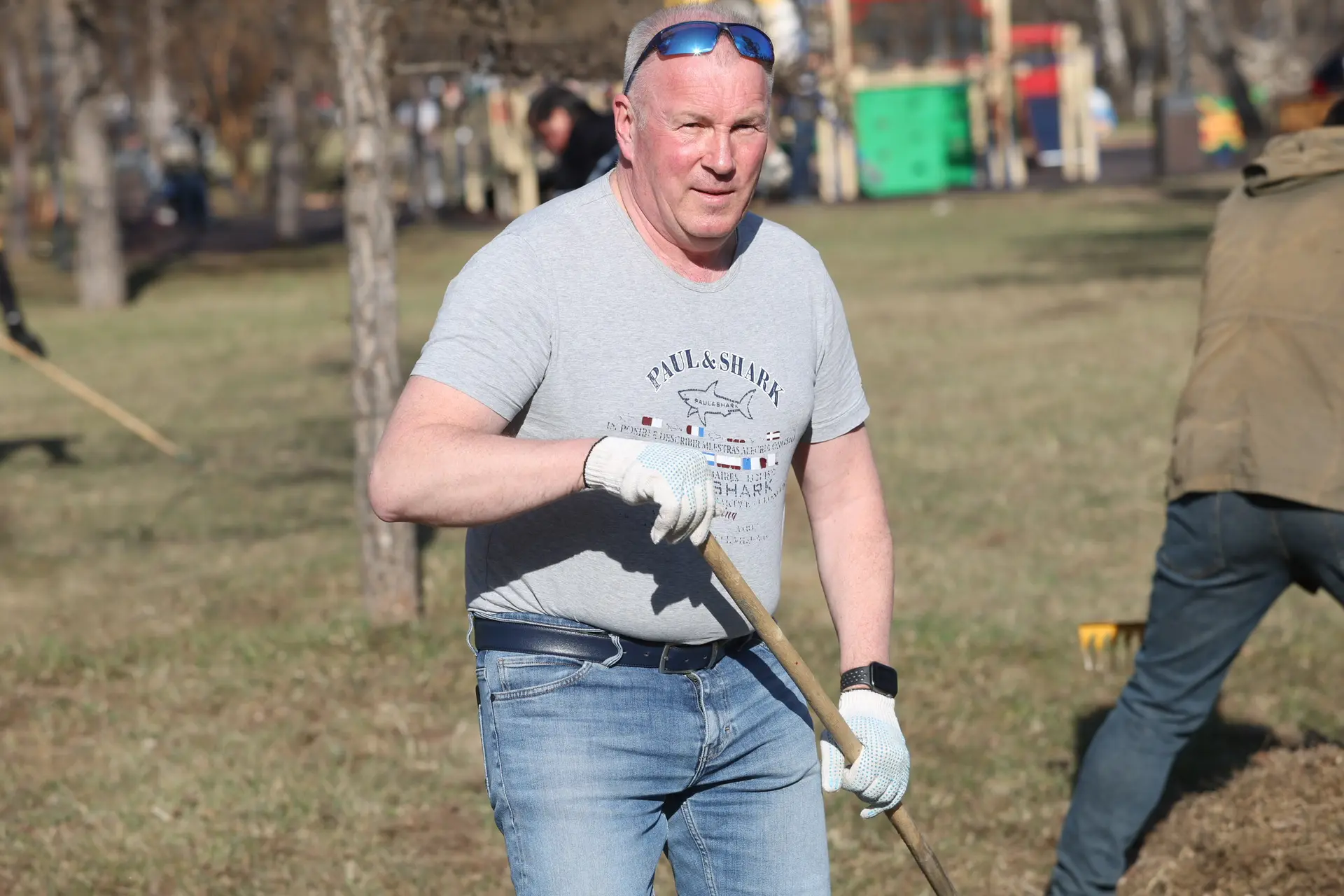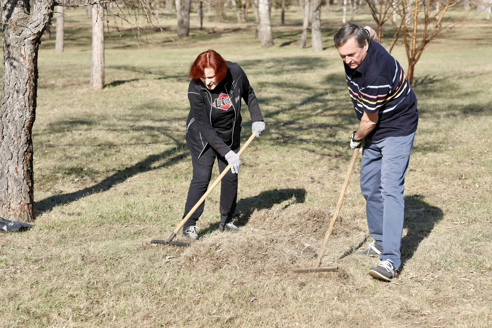 Местом уборки стал Гвардейский парк — тот же участок, что и год назад. Грабли, лопаты, метлы — всё пошло в дело: участники акции убирали мусор, прошлогоднюю листву, привели в порядок дорожки и газоны.