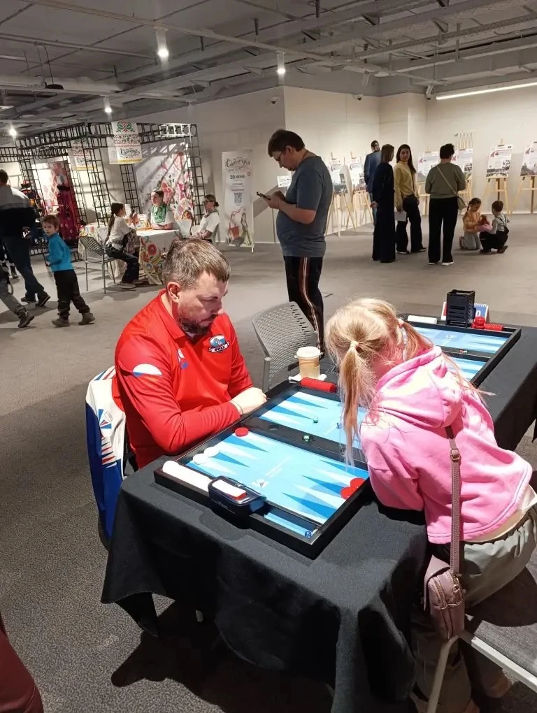 В этот же день прошли мастер-классы от Федерации нард Красноярского края. Эта игра, знакомая многим народам, объединила гостей разных возрастов: участники могли узнать правила и сыграть с серебряным призером России по нардам Евгением Хорошиловым и президентом Федерации нард Сергеем Лозовским.
